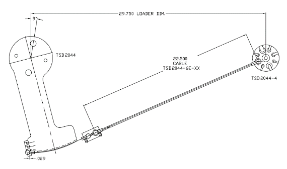 TSD2044-4 is a Tensiometer cable holder that is used with the TSD2044 moment arm. It allows a technician to apply precise tension to a stainless-steel aircraft cable, which is used to verify and calibrate a cable tensiometer. It can accommodate cable sizes from 1/16” to 9/32”. The TSD2044-4 is bolted on the right-hand end of the TSD2060 Click wrench calibration system. One ball end of the tensiometer cable is attached to the TSD2044 moment arm, and the other end is placed in the appropriately sized groove on the TSD2044-4. A cover, TSD2044-3, is used to prevent the cable from rising out of the holder.